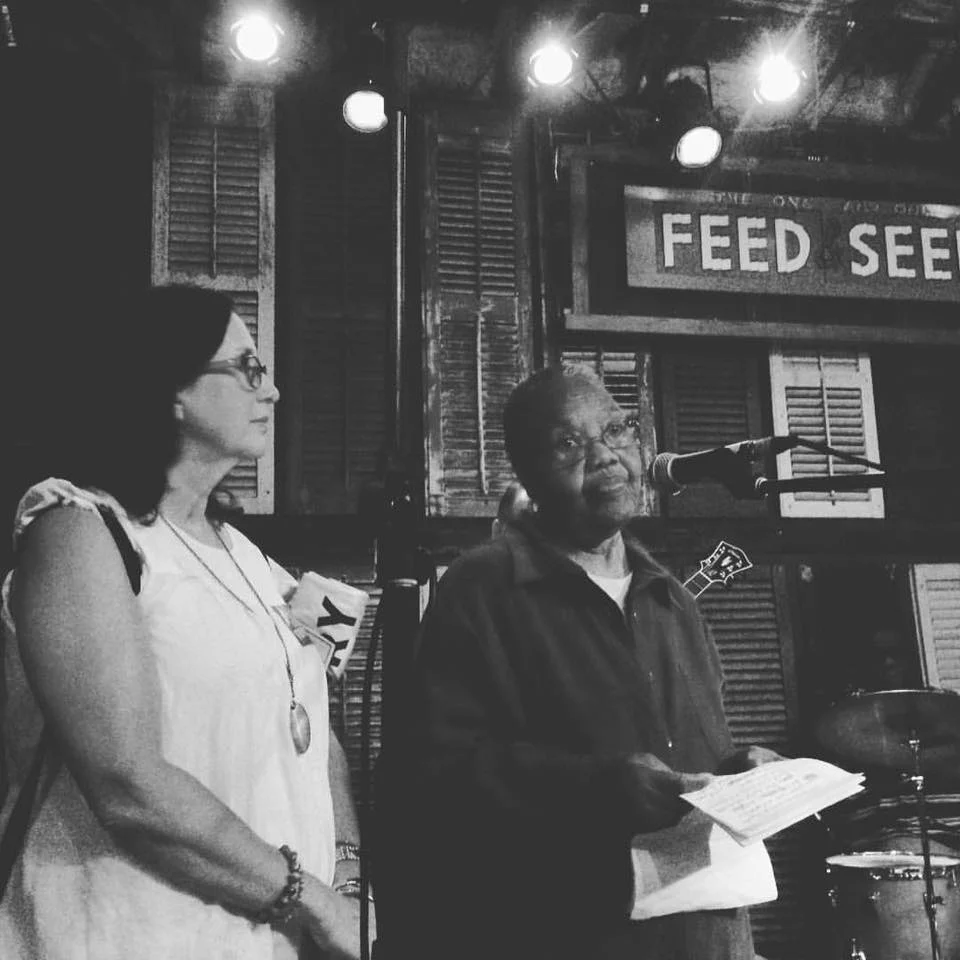 Gisele and Ms. Amy speaking during the Community Roots Benefit